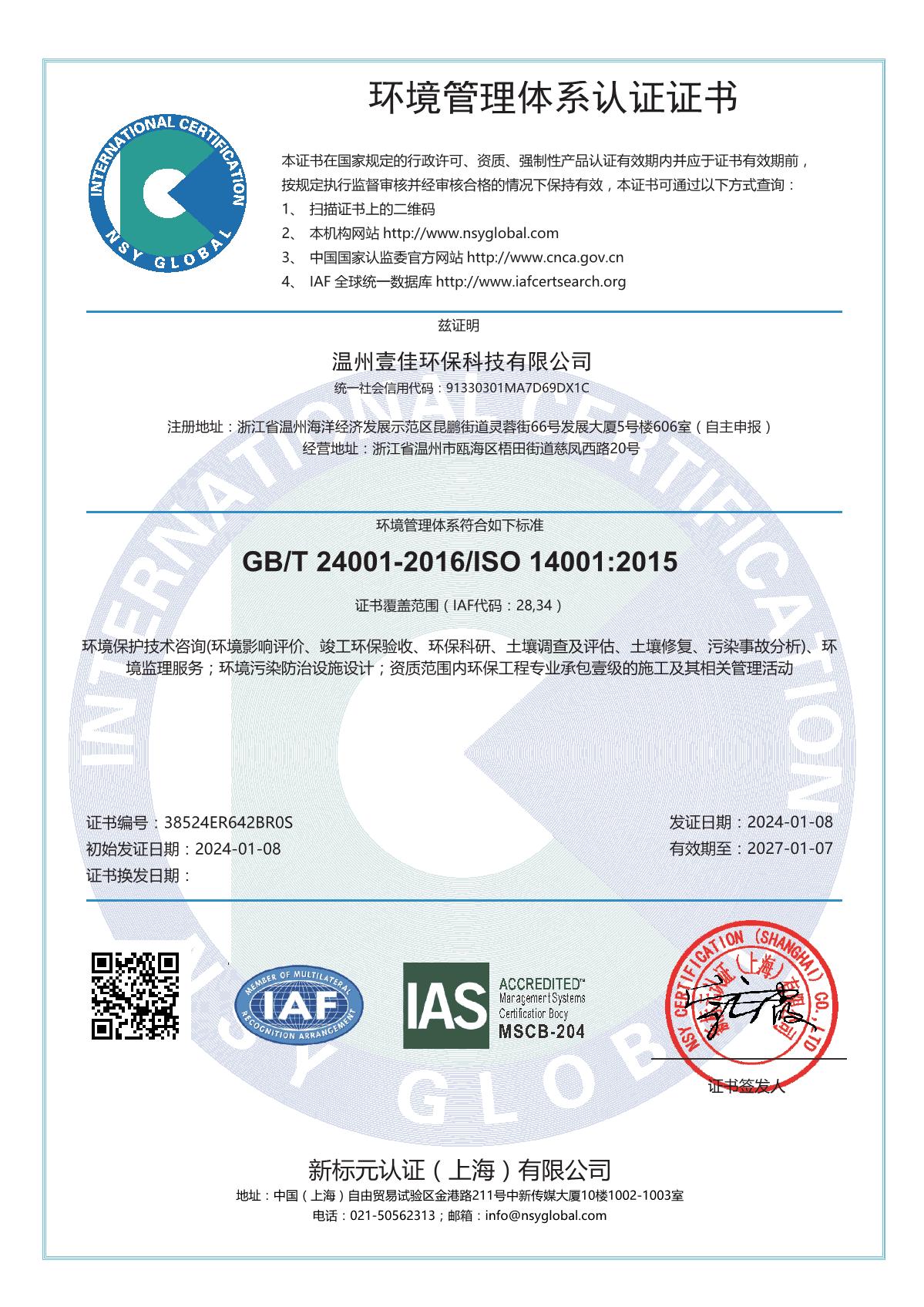 溫州壹佳環保科技有限公司業務范圍包括戰略與規劃環評、專項環保規劃環評和區域環評、環境保護規...